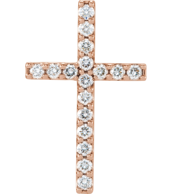 R42157 Pendant Set 14K Rose Round Natural Diamond 2Mm 12 Ctw I1, G-H Polished 12 Ctw Natural Diamond Petite Cross Pendant