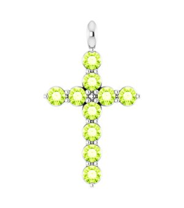R42363 Pendant Platinum Set Natural Peridot Round 2 Mm 18.4 X 10.8 Mm Polished Natural Peridot Cross Pendant