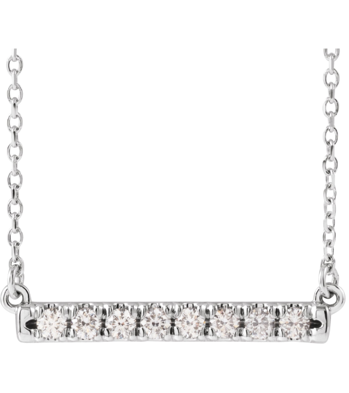 86969 Necklace Set Sterling Silver Round Natural Diamond 2Mm 14 Ctw I1, G-H 16 In Polished French-Set Bar Necklace