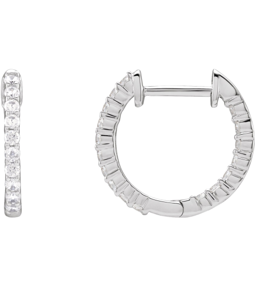 653631 Earring Set 14K White 14.5 Mm 1.66 Mm Lab-Grown Diamond Round 1.5Mm 12 Ctw Si1-Si2, Gh Pair Hinged Polished 12 Ctw Lab-Grown Diamond Inside-Outside Hoop Earrings