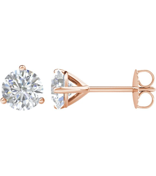 66233 14K Rose Set Round Natural Diamond Pair 5Mm 1 Ctw I2, G-H Friction Friction Backs Included 3-Prong Polished 1 Ctw Natural Diamond Stud Earrings