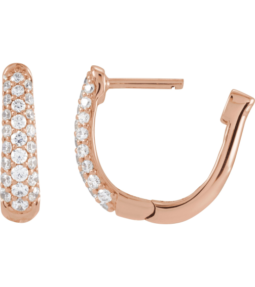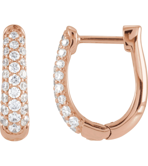 689136 Earring Set 14K Rose 14.9 Mm 3.9 Mm Natural Diamond Round 1.7Mm 12 Ctw I1, Gh Pair Hinged Polished 12 Ctw Natural Diamond Hoop Earrings