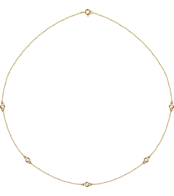 68577 Set 14K Yellow 5-Stone Natural Diamond 3Mm 12 Ctw I1, H+ Each Polished 12 Ctw Natural Diamond Necklace
