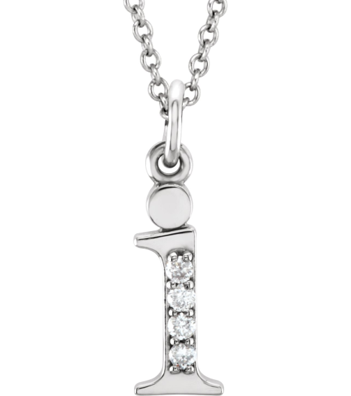 85803 Necklace Set 14K White Initial I Natural Diamond Round 1 Mm I1, G-H 0.02 Ctw 16 In Polished .02 Ctw Natural Diamond Initial Necklace
