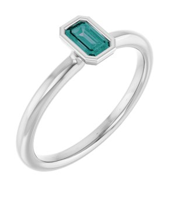 72129 Ring Set 14K White Lab-Grown Alexandrite Emerald 5 X 3 Mm Polished Lab-Grown Alexandrite Stackable Ring
