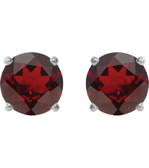 1874 Sterling Silver Set Round Natural Mozambique Garnet Pair 7 Mm Friction Friction Backs Included 4-Prong Polished Natural Mozambique Garnet Stud Earrings