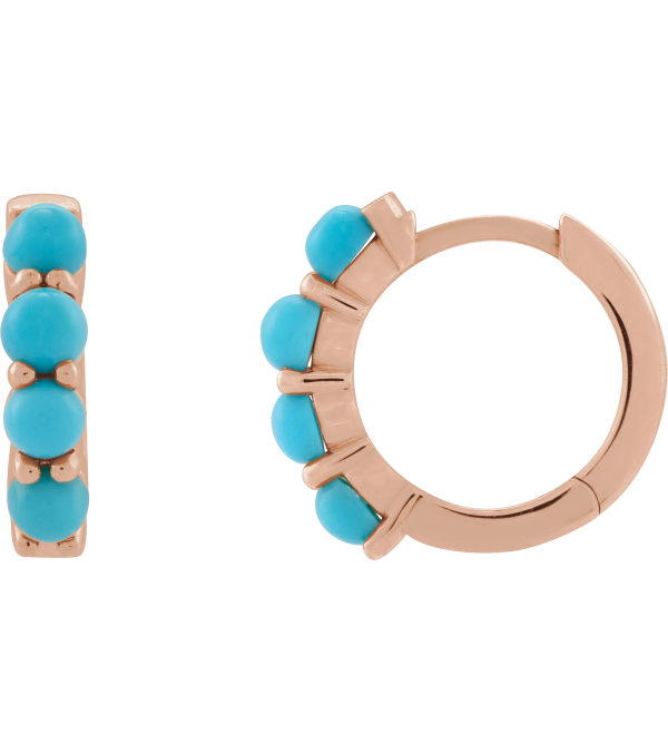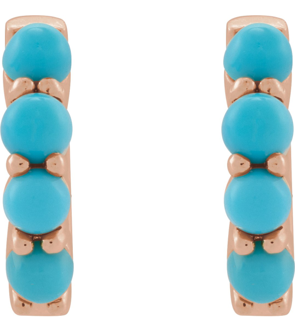 87181 Earring Set 14K Rose 14.7 Mm 3 Mm Natural Turquoise Round 3 Mm Pair Hinged Polished Natural Turquoise Cabochon Hinged Hoop Earrings
