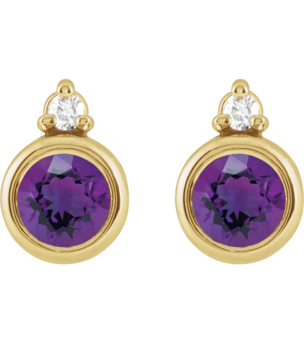 88546 Earring Set Natural Amethyst Round 4 Mm 14K Yellow Natural Diamond Pair Friction Backs Included Polished Natural Amethyst And .03 Ctw Natural Diamond Earrings