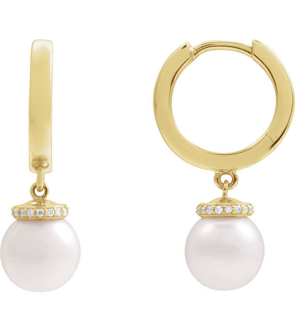 88748 Earring Set 14K Yellow 14.2 Mm 2.3 Mm Cultured Akoya Pearl Pearl 8Mm 0.07 Ctw I1, Gh Pair Hinged Polished Akoya Pearl And .07 Ctw Natural Diamond Hoop Earrings