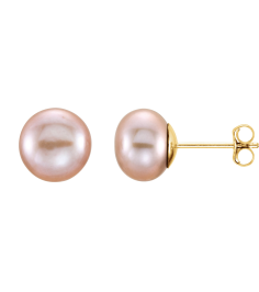 651659 14K Yellow Set Pearl Cultured Pink Freshwater Pearl Pair 8.0-9.0 Mm Friction Friction Backs Included Polished Freshwater Pink Cultured Pearl Earrings
