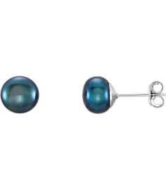 $20.82651659 Sterling Silver Set Pearl Cultured Black Freshwater Pearl Pair 8.0-9.0 Mm Friction Friction Backs Included Polished Freshwater Black Cultured P.....