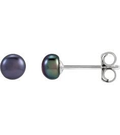 $15.31651659 Sterling Silver Set Pearl Cultured Black Freshwater Pearl Pair 5.0-6.0 Mm Friction Friction Backs Included Polished Freshwater Black Cultured P.....