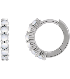 87181 Earring Set Platinum 12.21 Mm 2.32 Mm Natural White Opal Round 2 Mm Each Hinged Polished Natural White Opal Cabochon Hinged Hoop Earring