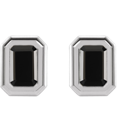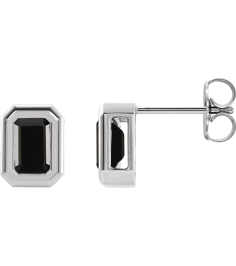 87364 Earring Set Natural Black Onyx Emerald 5 X 3 Mm Platinum Pair Friction Backs Included Polished Solitaire Bezel-Set Earrings