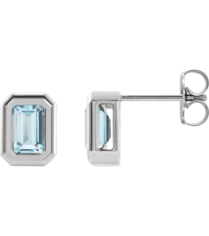 87364 Earring Set Natural Sky Blue Topaz Emerald 5 X 3 Mm Platinum Pair Friction Backs Included Polished Solitaire Bezel-Set Earrings