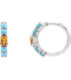 88733 Earring Set 14K White 19.6 Mm 3.8 Mm Natural Citrine Oval 5 X 3 Mm Pair Hinged Polished Natural Citrine And Natural Turquoise Huggie Hoop Earrings