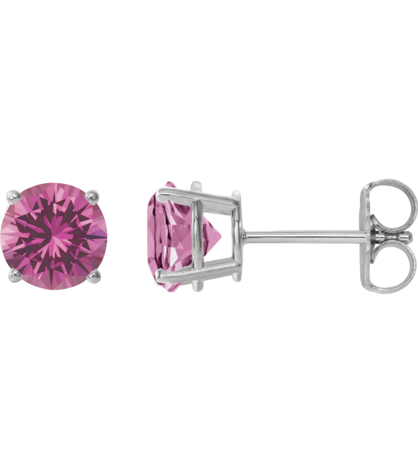 1874 Sterling Silver Set Round Lab-Grown Pink Sapphire Pair 7 Mm Friction Friction Backs Included 4-Prong Polished Lab-Grown Pink Sapphire Stud Earrings