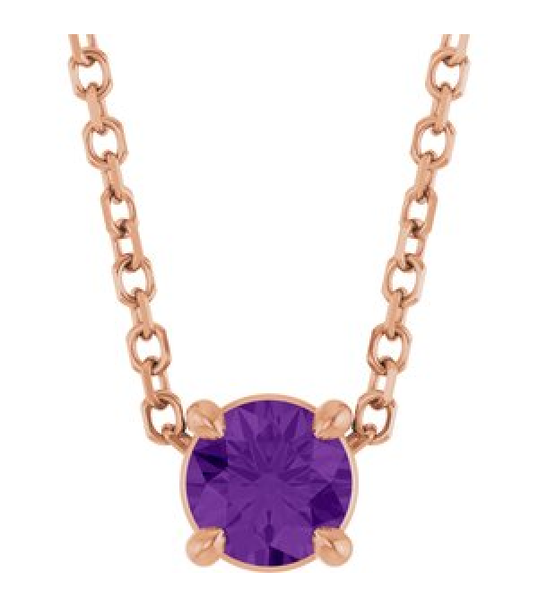 88436 Necklace Set 14K Rose Round Natural Amethyst 4 Mm 16-18 In Polished Natural Amethyst Solitaire Slide Necklace