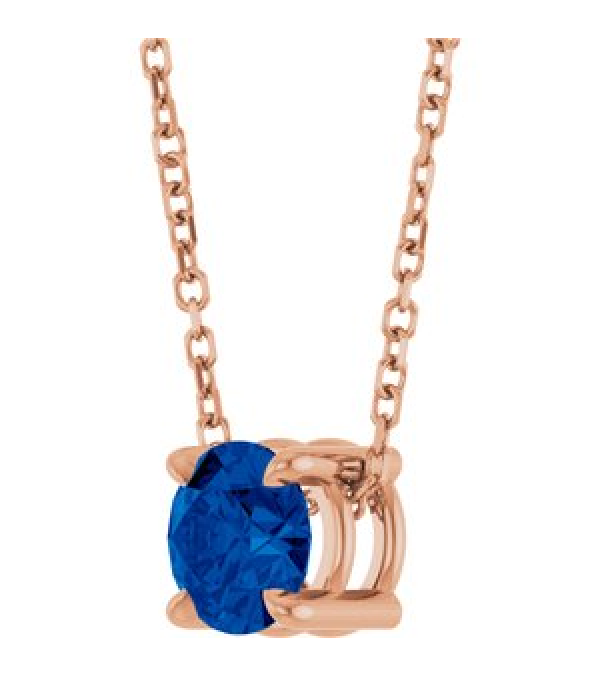 88436 Necklace Set 14K Rose Round Natural Blue Sapphire 5.5 Mm 16-18 In Polished Natural Blue Sapphire Solitaire Slide Necklace