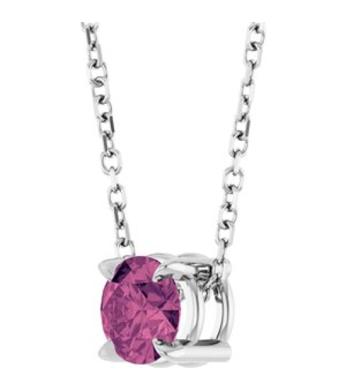 88436 Necklace Set 14K White Round Natural Pink Tourmaline 5 Mm 16-18 In Polished Natural Pink Tourmaline Solitaire Slide Necklace