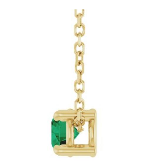 88436 Necklace Set 14K Yellow Round Natural Emerald 4 Mm 16-18 In Polished Natural Emerald Solitaire Slide Necklace