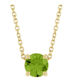 88436 Necklace Set 14K Yellow Round Natural Peridot 6 Mm 16-18 In Polished Natural Peridot Solitaire Slide Necklace