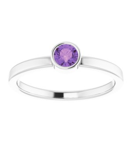 71806 Ring Set Platinum Natural Amethyst Round 4 Mm Polished Natural Amethyst Ring