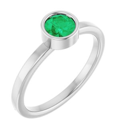 71806 Ring Set Platinum Natural Emerald Round 5 Mm Polished Natural Emerald Ring