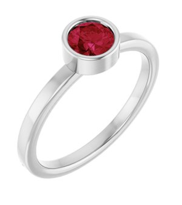 71806 Ring Set Rhodium-Plated Sterling Silver Imitation Ruby Round 5 Mm Polished Imitation Ruby Ring