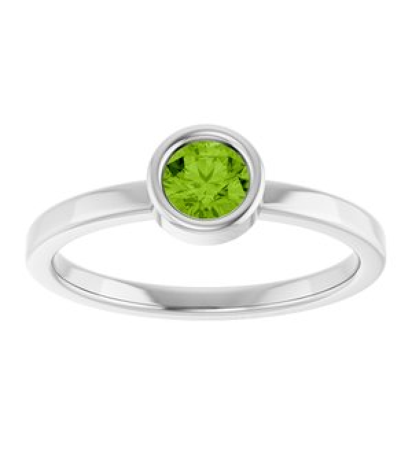 71806 Ring Set Rhodium-Plated Sterling Silver Natural Peridot Round 4.5 Mm Polished Natural Peridot Ring
