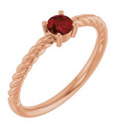 72207 Ring Set 14K Rose Natural Mozambique Garnet Round 4 Mm Polished Natural Mozambique Garnet Solitaire Rope Ring
