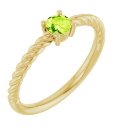 72207 Ring Set 14K Yellow Natural Peridot Round 4 Mm Polished Natural Peridot Solitaire Rope Ring