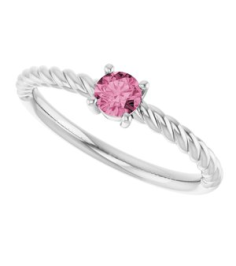 72207 Ring Set Platinum Natural Pink Tourmaline Round 4 Mm Polished Natural Pink Tourmaline Solitaire Rope Ring