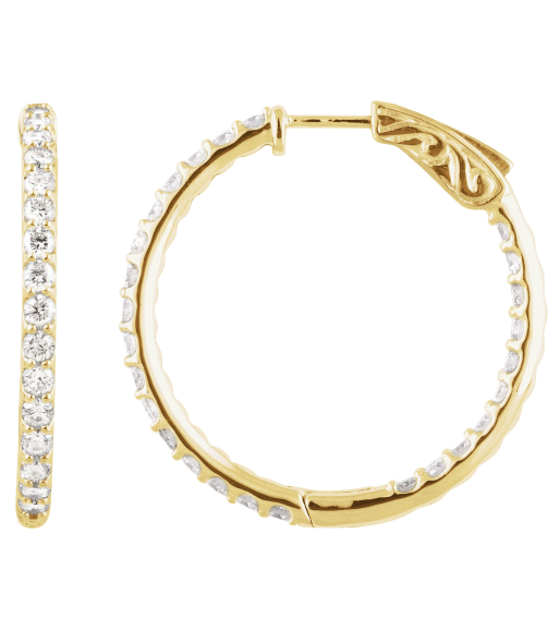 650183 Earring Set 14K Yellow 29.5 Mm 2.3 Mm Natural Diamond Round 2.1Mm 2 Ctw I1, H+ Pair Hinged Polished 2 Ctw Natural Diamond Inside-Outside Hinged Hoop Earrings