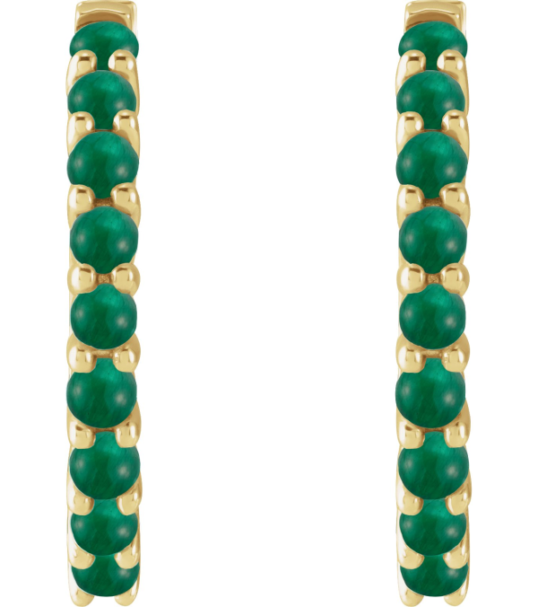 87181 Earring Set 14K Yellow 20 Mm 2.32 Mm Natural Emerald Round 2 Mm Pair Hinged Polished Natural Emerald Cabochon Hinged Hoop Earrings