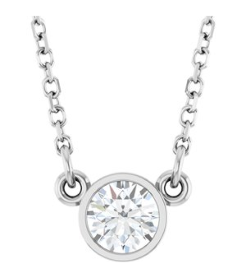 61134 Necklace Set 14K White Round Stuller Lab-Grown Moissanite 4 Mm 18 In Polished Moissanite Solitaire Necklace