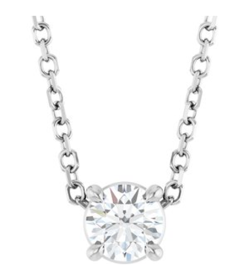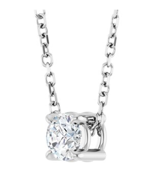 88436 Necklace Set Platinum Round Natural Diamond 4Mm 15 Ct Si2-Si3, G-H 16-18 In Polished 15 Ct Natural Diamond Solitaire Slide Necklace