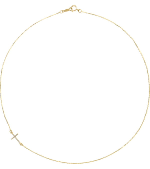 86668 Necklace Set 14K Yellow Round Natural Diamond .9Mm 0.04 Ctw I1, G-H 16 In Polished .04 Ctw Natural Diamond Off-Center Sideways Cross Necklace