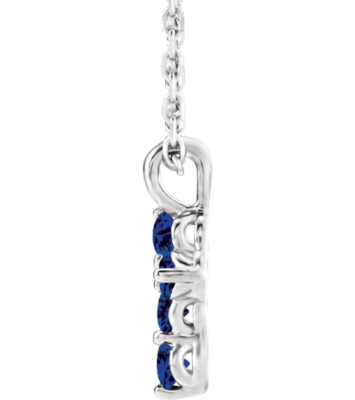 R42363 Necklace 14K White Set Lab-Grown Blue Sapphire Round 2 Mm 11.5 X 6.1 Mm Polished Lab-Grown Blue Sapphire Cross 16-18 In Necklace