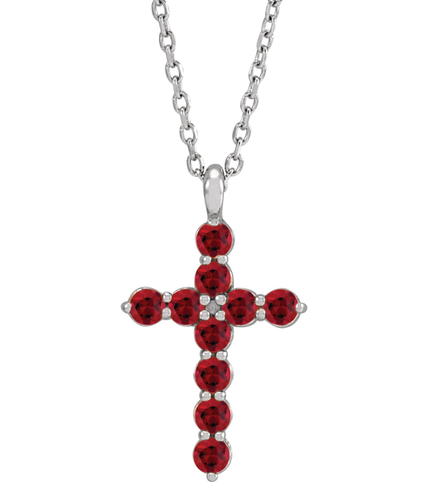 R42363 Necklace Platinum Set Lab-Grown Ruby Round 2 Mm 18.4 X 10.8 Mm Polished Lab-Grown Ruby Cross 16-18 In Necklace