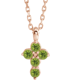 R42363 Necklace 14K Rose Set Natural Peridot Round 2 Mm 11.5 X 6.1 Mm Polished Natural Peridot Cross 16-18 In Necklace