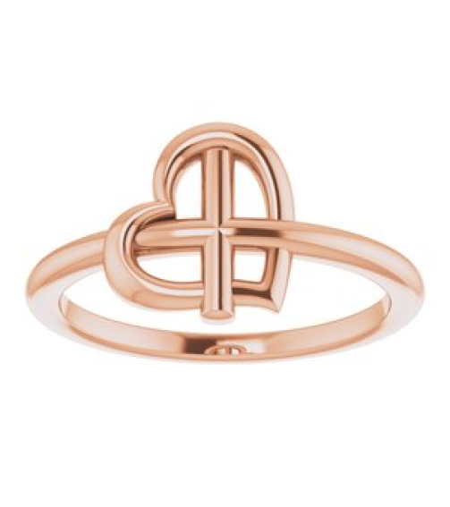 R43065 Ring 14K Rose Polished Heart Cross Ring