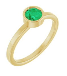 71806 Ring Set 14K Yellow Natural Emerald Round 4.5 Mm Polished Natural Emerald Ring