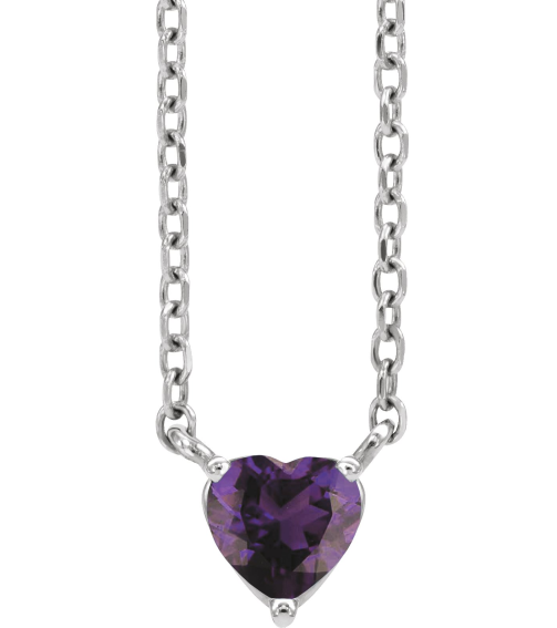 88055 Necklace Set 14K White Heart Natural Amethyst 4 X 4 Mm 16-18 In Polished Natural Amethyst Solitaire Necklace