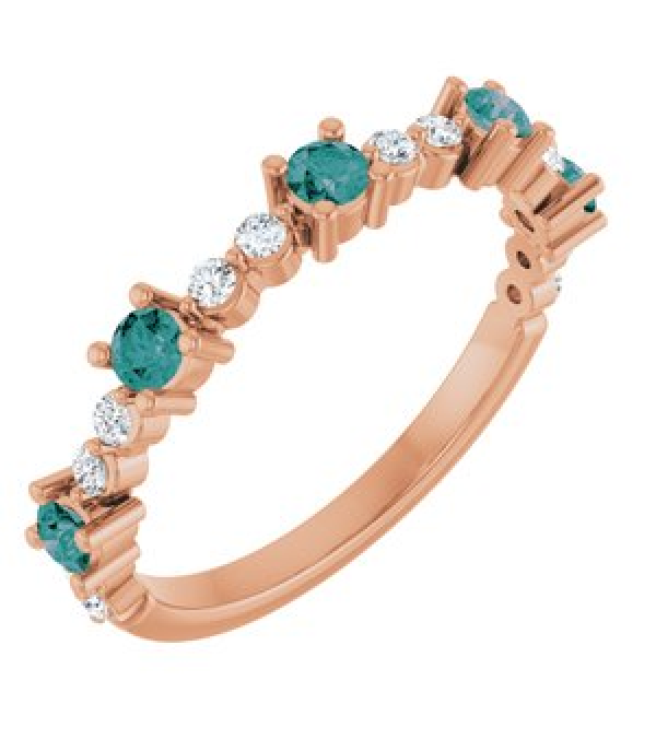 72051 Ring Set 14K Rose Natural Alexandrite Round 2.5 Mm Natural Diamond Polished Natural Alexandrite And 16 Ctw Natural Diamond Stackable Ring
