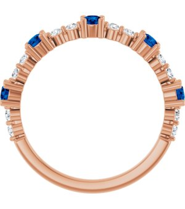 72051 Ring Set 14K Rose Natural Blue Sapphire Round 2.5 Mm Natural Diamond Polished Natural Blue Sapphire And 16 Ctw Natural Diamond Stackable Ring