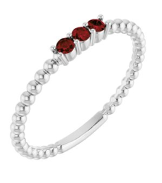 123113 Ring Set Sterling Silver Lab-Grown Ruby Round 2 Mm Polished Lab-Grown Ruby Beaded Ring