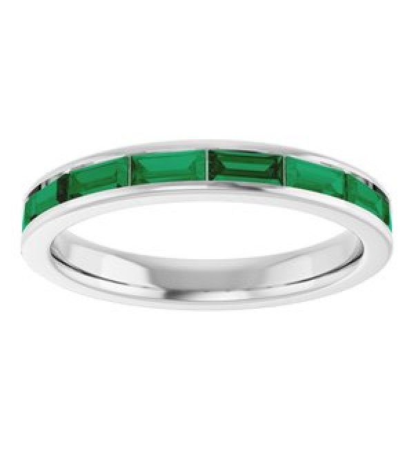 72331 Ring Set 14K White Natural Emerald Straight Baguette 4 X 2 Mm Polished Natural Emerald Stackable Ring