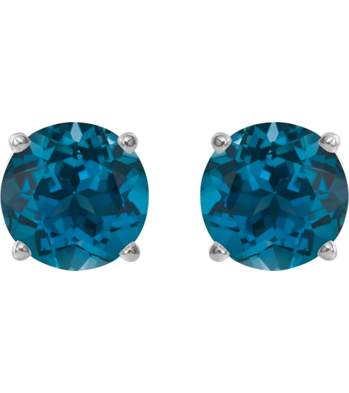 1874 Platinum Set Round Natural London Blue Topaz Pair 7 Mm Threaded Threaded Backs Included 4-Prong Polished Natural London Blue Topaz Stud Earrings
