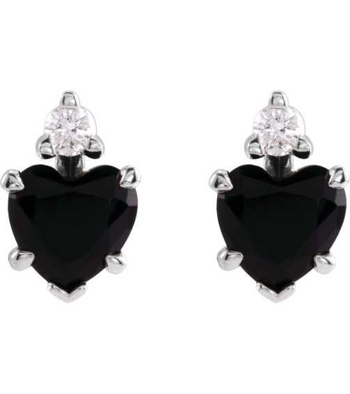88617 Earring Set Natural Black Onyx Heart 4 X 4 Mm 14K White Natural Diamond Pair Friction Backs Included Polished Natural Onyx And .06 Ctw Natural Diamond 5-Claw Prong Earrings